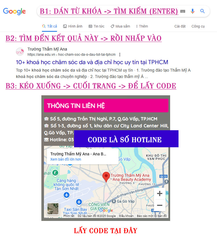Bước 3: Kéo xuống cuối trang để lấy CODE xác minh (là số Hotline)